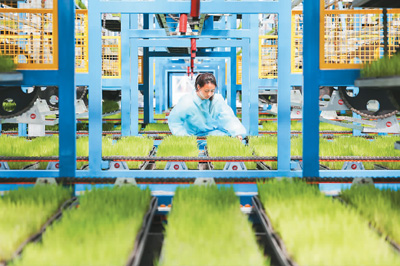 据央视新闻客户端报道,黑龙江北大荒集团建三江七星农场以叠盘育秧技术为核心,集成应用水稻温汤浸种技术、智能双氧催芽技术等先进技术及设备,实现育秧方式工厂化,将种子出苗时间缩短5至7天,水稻催芽育秧工作顺利开展。