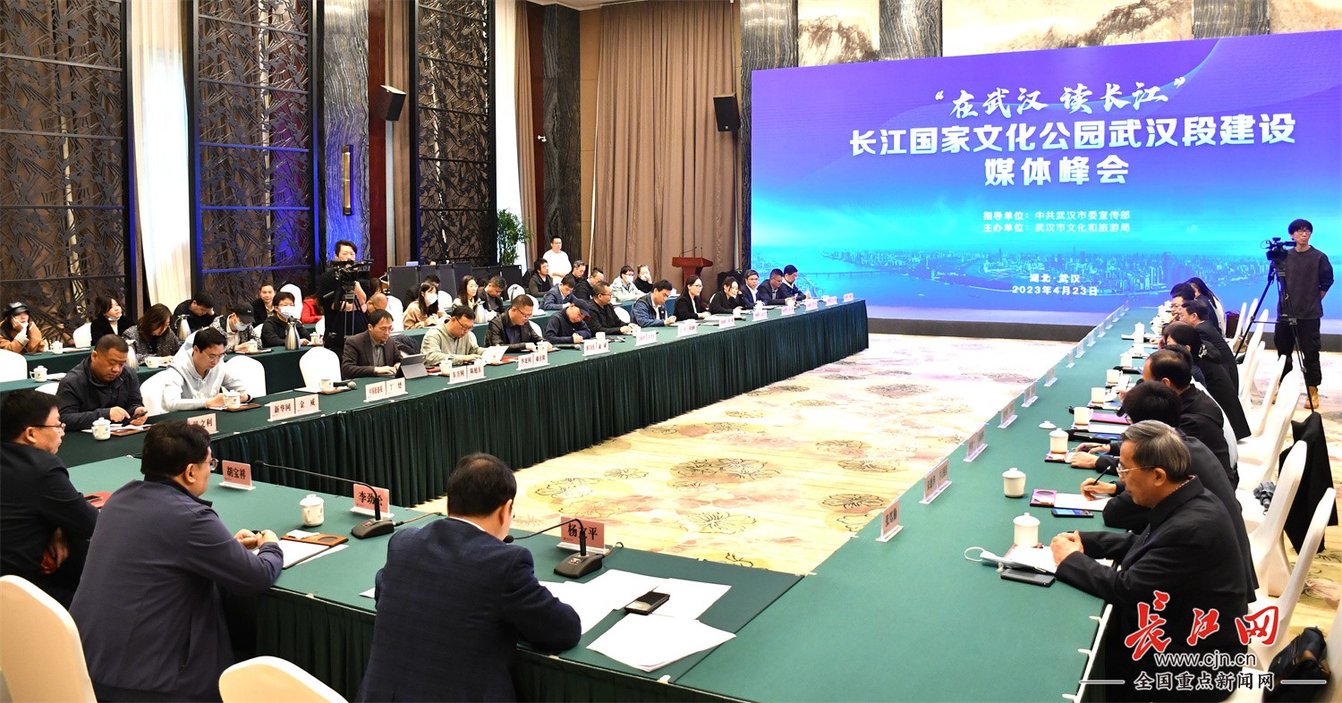 4月23日,由武汉市委宣传部指导、武汉市文化和旅游局主办的“在武汉 读长江”长江国家文化公园武汉段建设媒体峰会在武汉会议中心举行。这是“沿着长江读懂中国——万里长江行”首站武汉的重要活动。来自长江流域13个省(自治区、直辖市)的东方网、中国江苏网、浙江在线、安徽网、大江网、长江网、红网、华龙网、四川新闻网、多彩贵州网、云南网、中国西藏新闻网、青海新闻网、红星新闻网、龙虎网、杭州网、中国宁波网、合肥在线、南昌新闻网、星辰在线、贵阳网、昆明信息港、汉江网、荆州新闻网、咸宁网负责人参加峰会讨论,长江网承办,并共同发布《长江国家文化公园建设传播协作武汉共识》。