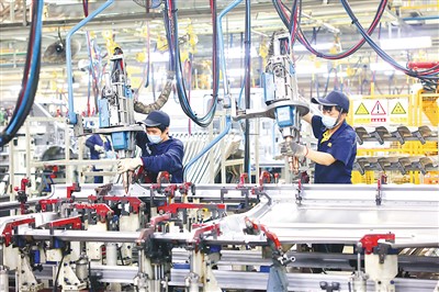 近年来,江西省赣州市积极推动汽车制造业发展,做大做强汽车工业经济、汽配民营经济等实体经济,形成产业集聚优势,带动产业链上下游协同发展。图为5月6日,赣州经开区新能源科技城的一家汽车制造企业,工人在自动化生产线上组装新能源厢式汽车。