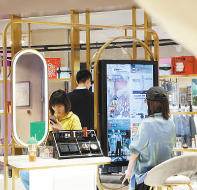 除了大型商圈,小型社区商圈的活力也被激发。没有导购员、没有收银台,在西安高新区兰岛广场一间百余平方米的小店内,几位女顾客正在试妆镜前试用口红、眼影等美妆产品。这家银泰智慧“云店”提供了几十个美妆品牌的上百种小样,顾客随到随试,试用满意后通过电子屏下单,同城当日就可送达。银泰“云店”项目负责人吴策说:“运用数字技术打通线上线下,‘云店’模式助力消费者在小型社区商圈享受优质的购物体验。”