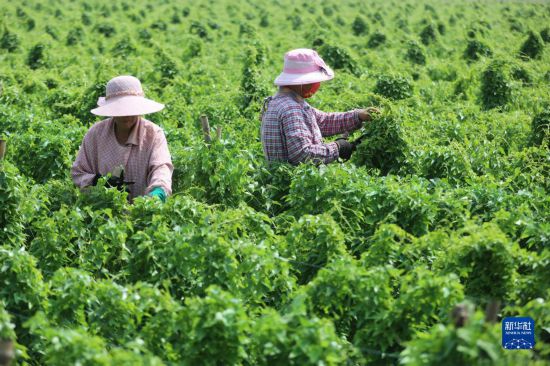 6月20日,河南省焦作市温县黄庄镇西林肇村农民在铁棍山药种植基地进行田间管理。