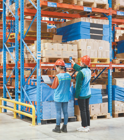 浙江嘉兴,菜鸟工作人员在快递仓内作业。