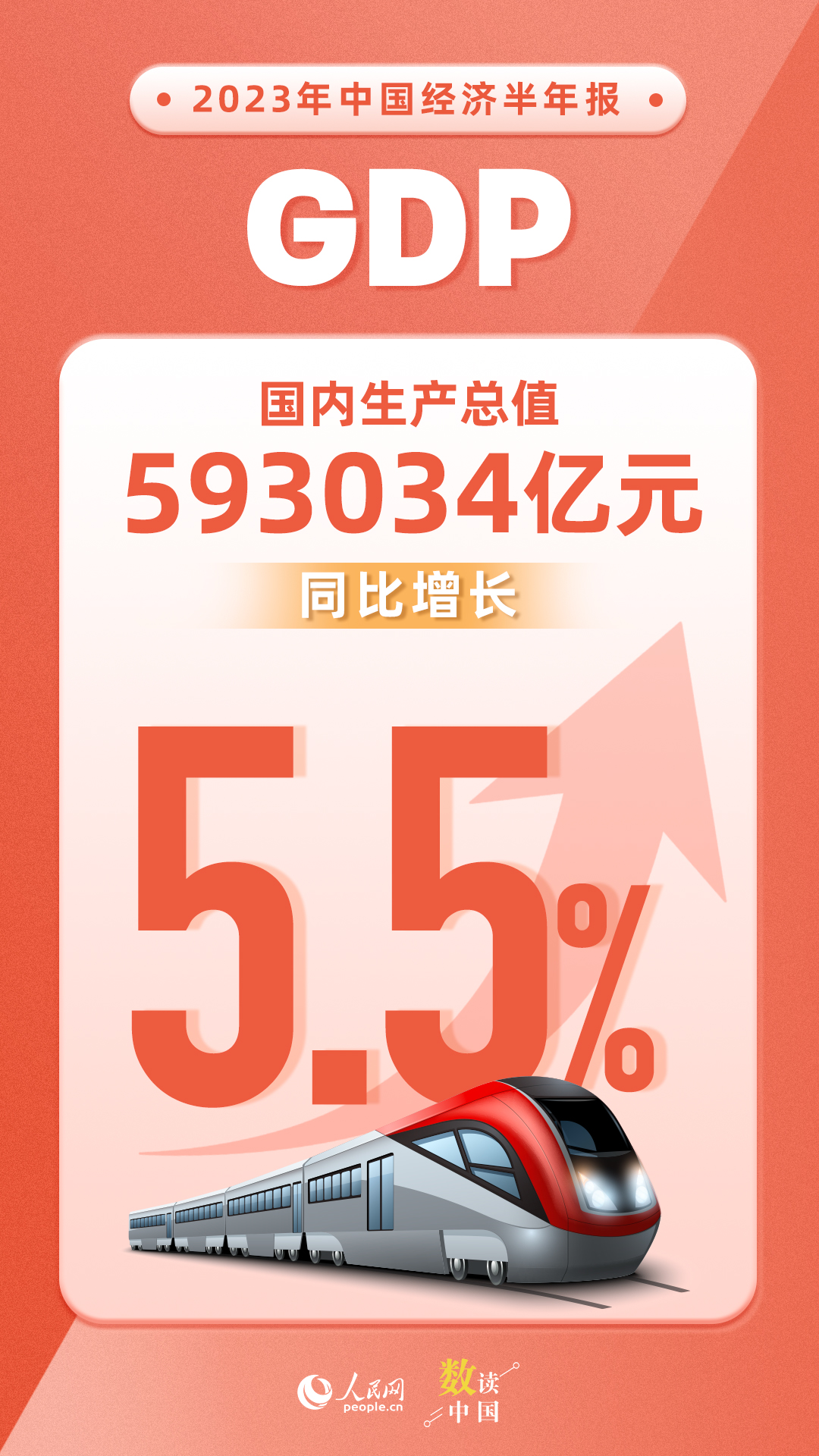 2023年上半年国内生产总值(GDP)593034亿元 同比增长5.5%