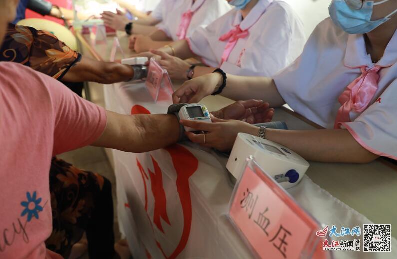 (村民在健康心理功能室内测量血压 舒言诚/摄)