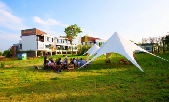 图为途牛南京高岗村桐画田园民宿暑期接待的企业团建