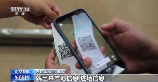 外地客商 吕明志:通过一卡通消费了之后,扫上边这个追溯码,就出来产地信息、进场信息、检测信息,还有采摘时间,所以说现在很方便,比较安全。