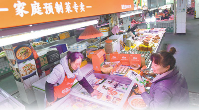 消费者在湖南浏阳一家生鲜市场挑选预制菜。
