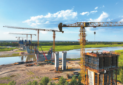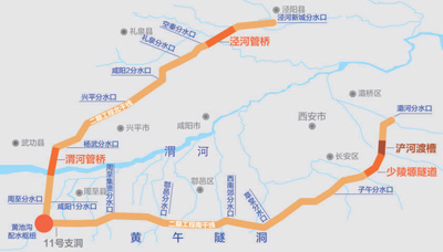 引汉济渭二期工程输水线路渭河管桥施工现场。