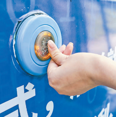 江苏苏州无障碍公交车上带有盲文的按钮。