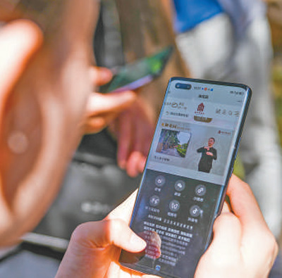 北京首批手语导览服务已正式上线,一名听障人士在观看手语讲解视频。