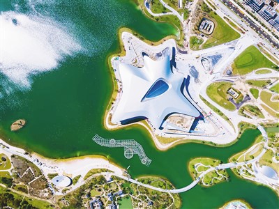 夜幕降临,“星云”造型的成都科幻馆流光溢彩。场馆顶部的“科幻之眼”时刻凝视宇宙,寄托着人类对科幻探索的向往。