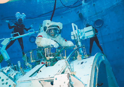 航天员汤洪波在进行水下训练(8月24日摄)。