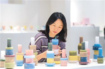 在消费品展区,来自比利时的精美蜡烛堆吸引了参观者目光。