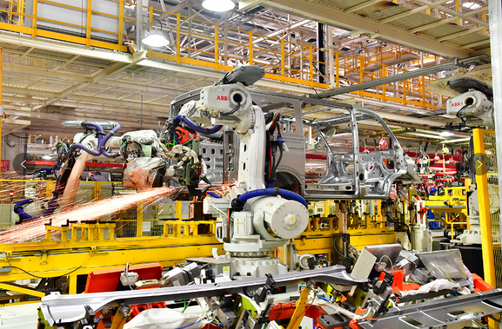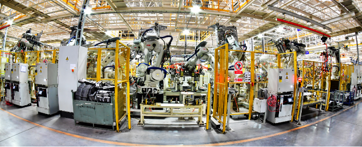 走进生产车间现场,身着制服、头戴安全帽、佩戴手套的员工们,在各个岗位环节专心作业。128台各类焊接机器人,11条自动流水线,配合KITTING配料、AGV自动驳运等手段,可实现79个车型的混线生产。据介绍,车间还进一步采用电伺服压机、机器人上料等先进设备和工艺,冲压车间自动化率由35%提升到65%,涂压车间的省级智能示范车间自动化率达50%,动力总成车间长短发装配线自动化率超60%,大幅度降低劳动强度,在保证产品质量的同时进一步提高了生产效率。