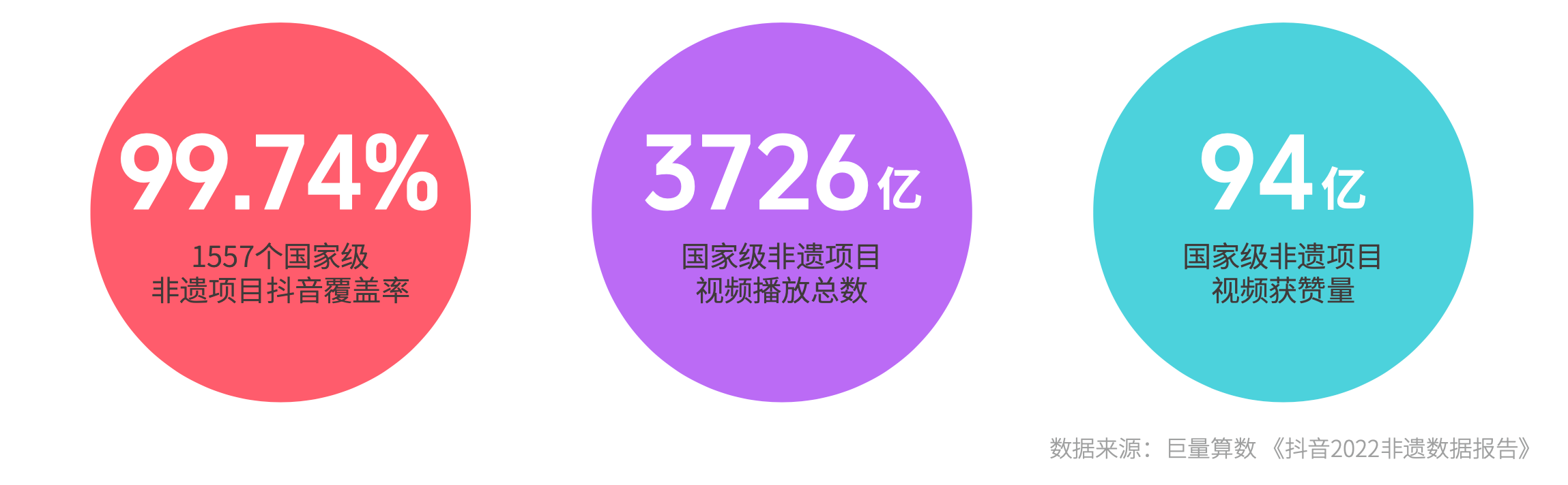 如今,越来越多的90后、00后爱上传统文化、学习传统文化,并通过社交媒体自发地传播非遗文化。在抖音,短视频内容覆盖了高达99.74%的国家级非遗项目(1557个),相关内容获得了用户3726亿次观看和近百亿次点赞。