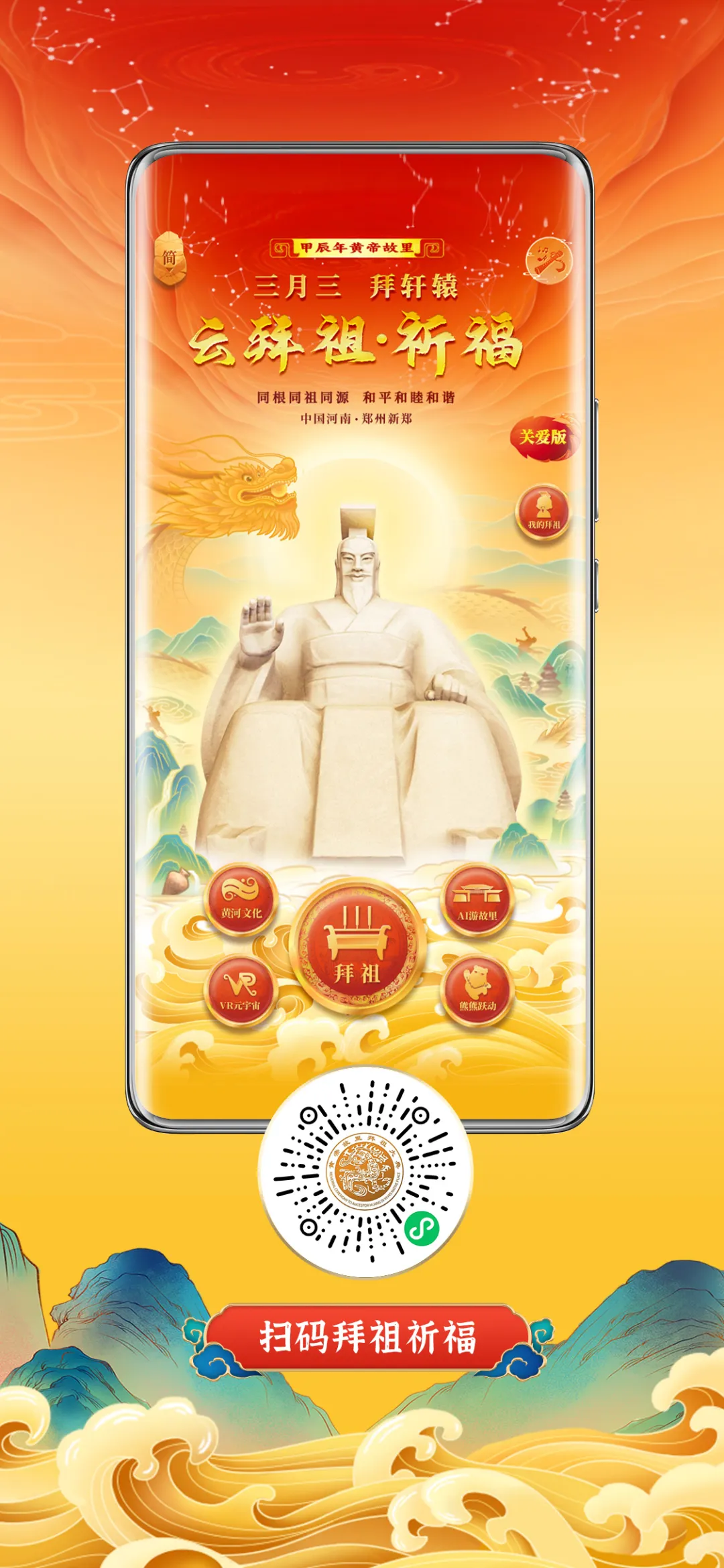 从根脉出发,找到未来的方向。“云拜祖”5.0版在设计和推广阶段,还提炼了嵩山、功夫、双槐树遗址、大河村遗址、商代遗址等本土元素,让广大网友在拜祖祈福的同时,“触碰”祖先们的文化符号,感受国家宝藏的魅力,助力郑州进一步打响“天地之中、华夏之源、功夫郑州”城市品牌。