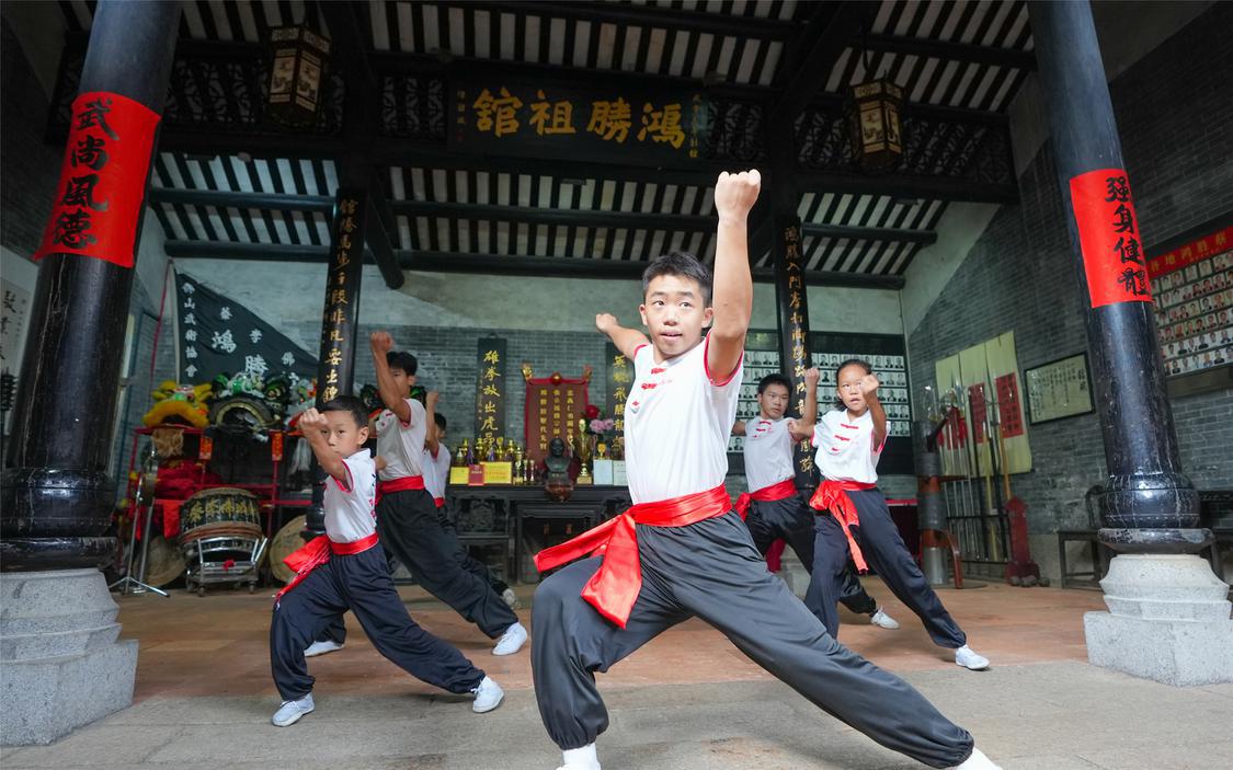 弟子在佛山鸿胜馆学习蔡李佛拳。/佛山市新闻传媒中心记者章佳琳摄