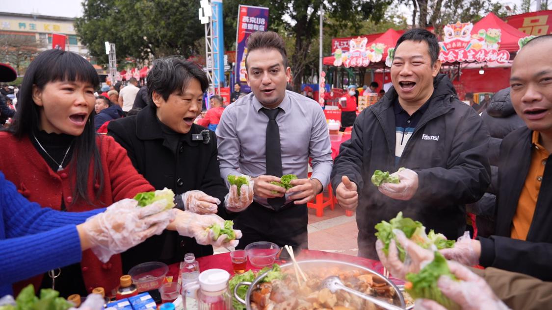 来自也门的游客西班尼亦来到生菜会现场,体验独特的民俗文化,他表示:“这里的节日氛围非常浓,听说这个活动有几百年历史,我觉得传承得非常好。通过食物来传递美好祝福的习俗很好,我非常喜欢,我会介绍给更多朋友。”