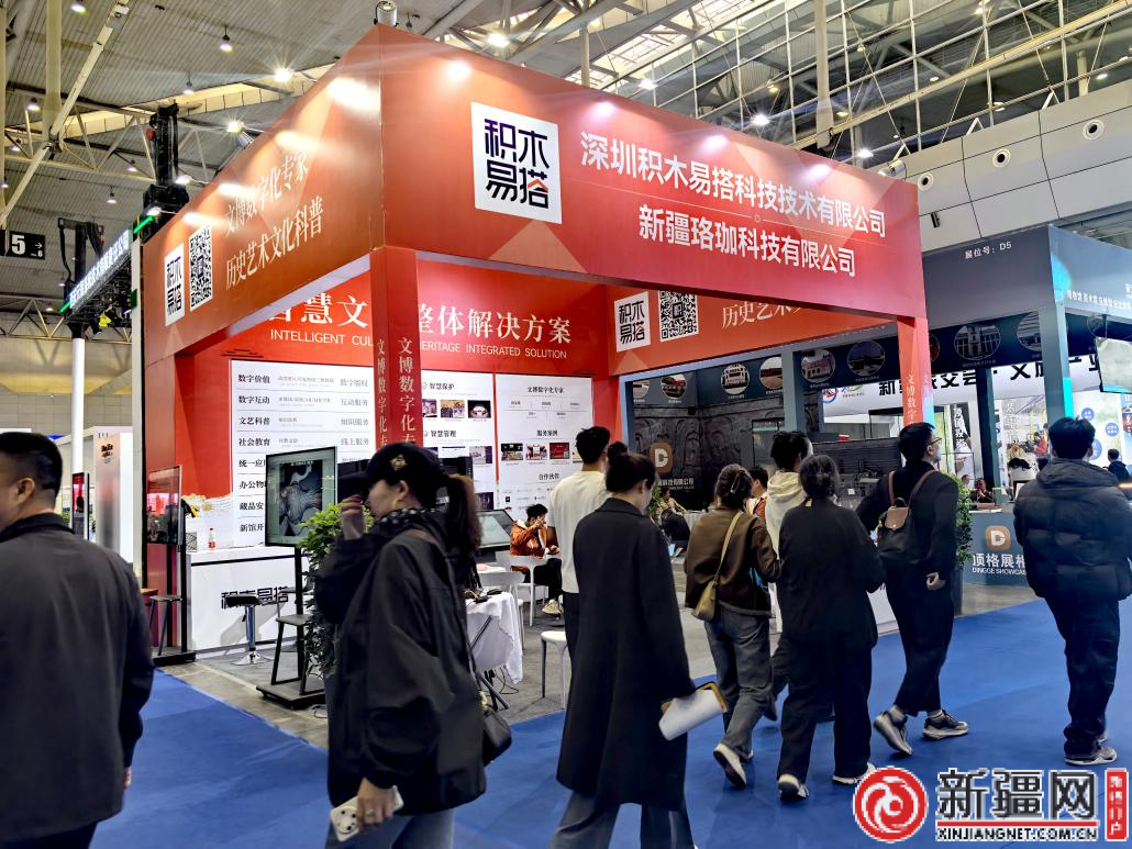 深圳积木易搭科技技术有限公司、新疆珞珈科技有限公司展位前人来人往(薛玲摄)