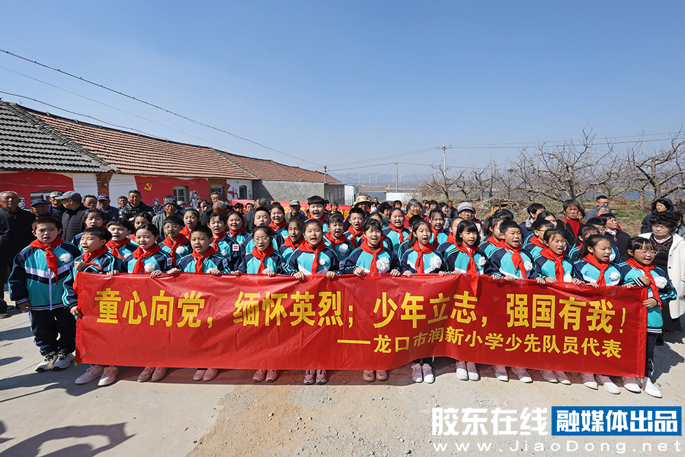活动现场,庄严与温情相互交织。军地代表敬献花篮,以三碗酒祭英烈:一敬浩气长存,二敬日月同辉,三敬千秋传颂。龙口市润新小学的少先队员合唱《我们是共产主义接班人》,稚嫩的歌声为83载红色传承注入了新生力量。