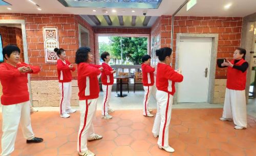 在中山路黄金地段的农行“金岁之家”康养智慧小屋,国家社会体育指导员指导老年人练习八段锦,屋内的智能健康监测设备方便居民进行体质检测,这一创新实践为社区体育服务提供了新思路。
