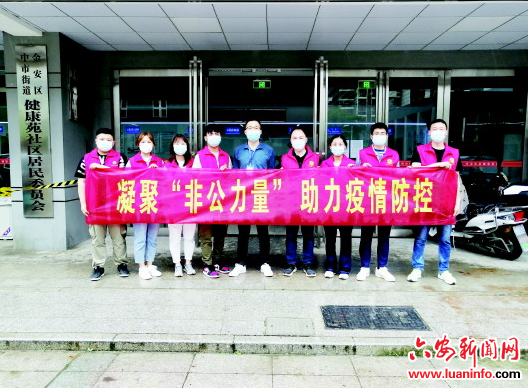 病毒无情人有情,风雨同舟心连心。各非公企业和社会组织党组织主动加强与属地党组织协同联动,积极下沉工作力量和资源,配合开展防疫工作,主动开展爱心服务,做到到位不越位、帮忙不添乱。六安经济技术开发区党建指导站带领园区160多个非公党组织积极开展志愿服务、捐赠物资活动,如六安银弈服饰有限公司、皖厨职业培训学校等企业通过捐赠防疫物资、无偿提供盒饭等方式,履行社会责任、凝聚抗疫合力。各物业服务企业党组织和党员带头发挥作用,通过发放明白纸、悬挂条幅等方式大力宣传防控疫情应知应会内容,在各小区门口设立24小时疫情防控点,配合社区做好体温检测、人员登记等工作。市出租车行业党委组织开展“军装绿”变“志愿红”活动,成立退役军人出租汽车行业党员示范车队,为封闭隔离的住户购买物资、运送快递等。市律师行业党委组织各律师事务所成立抗疫志愿服务队,主动与防疫力量薄弱小区联系,协助开展工作。1800余名从霍邱县、金寨县等县区驰援“三区”的医疗队员逆行出征,连续工作7个小时不眠不休,助力“三区”开展核酸检测等各项工作,避免了疫情更大范围的蔓延,保障了人民群众的生命健康安全,真正做到一面党旗就是一支队伍、一个支部就是一座堡垒。