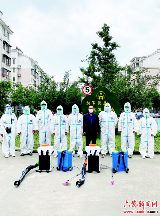 裕安区鑫马物业党支部组建的病毒消杀志愿队伍。