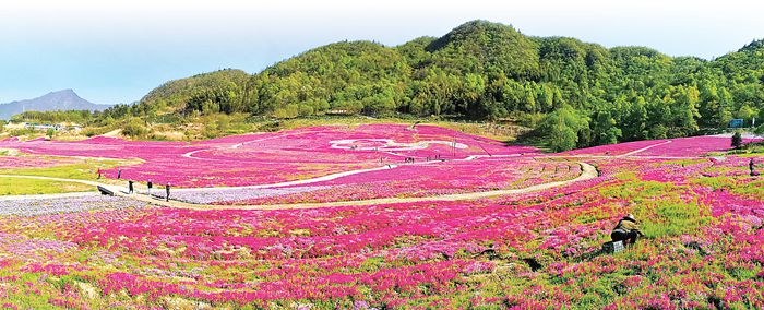 霍山县太阳乡船舱花海,游人如织。(图片由六安市委宣传部提供)