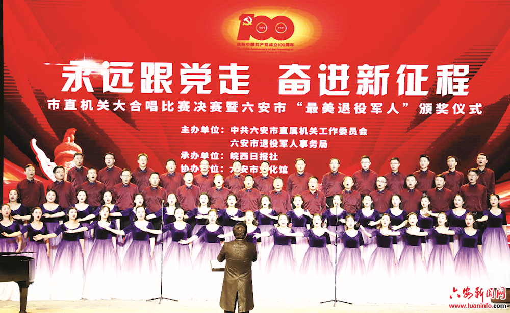 本网讯 7月31日下午,“永远跟党走 奋进新征程”市直机关大合唱比赛决赛暨六安市“最美退役军人”颁奖仪式在市文化馆红剧场隆重举行并圆满落幕。