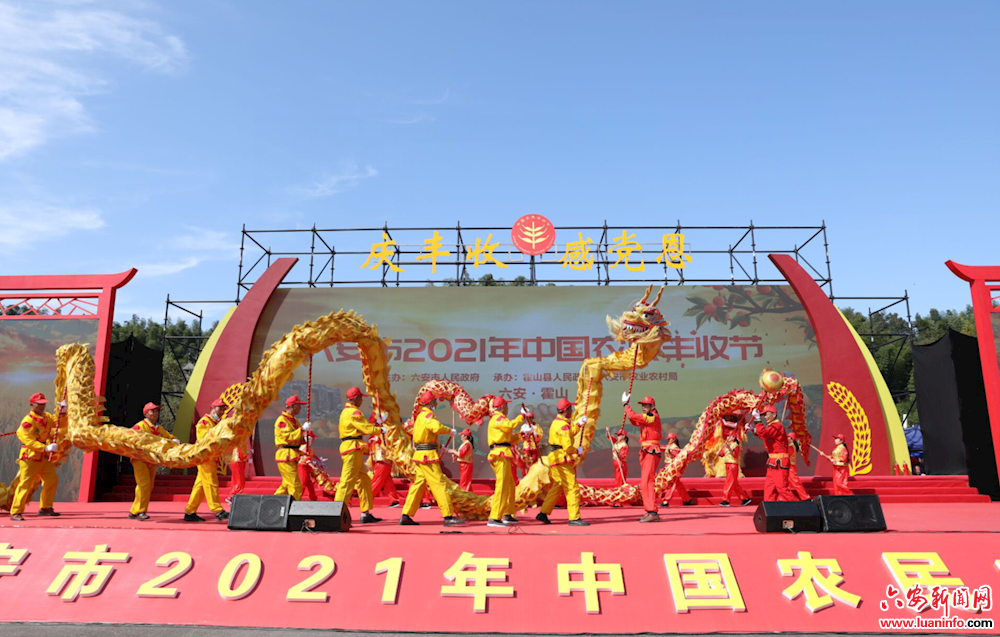 五谷丰登粮满仓,丰收共庆喜秋分。9月23日,时值秋分。艳阳高照,蓝天如洗。在丹桂飘香、硕果累累的金秋季节,以“庆丰收 感党恩”为主题的六安市2021年中国农民丰收节在霍山县黑石渡镇清潭沟村举办。