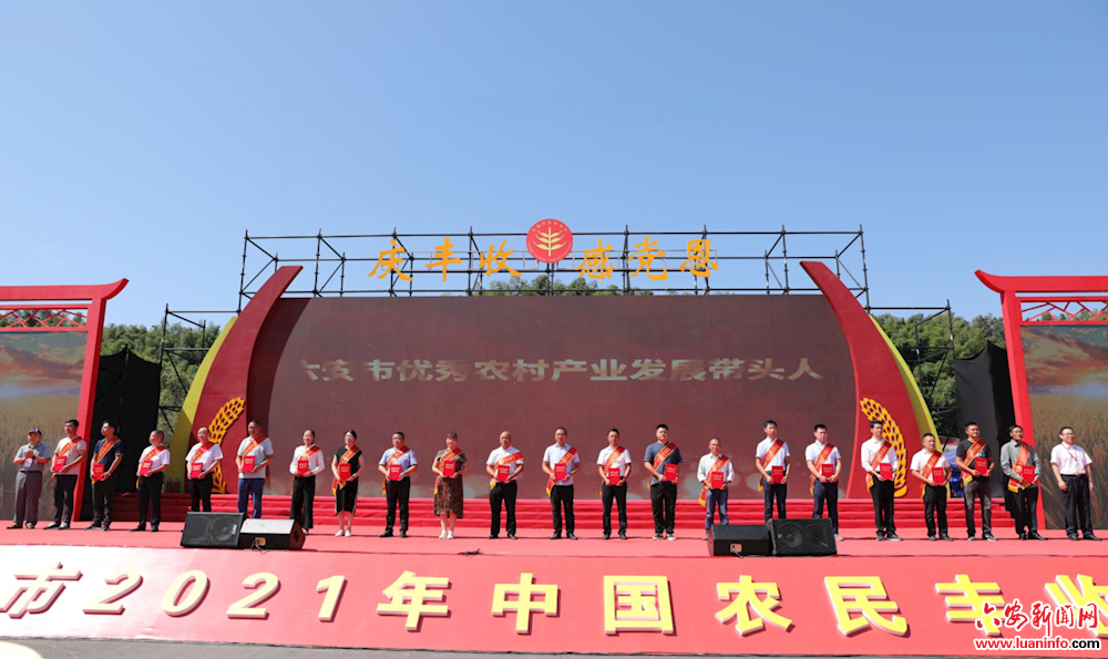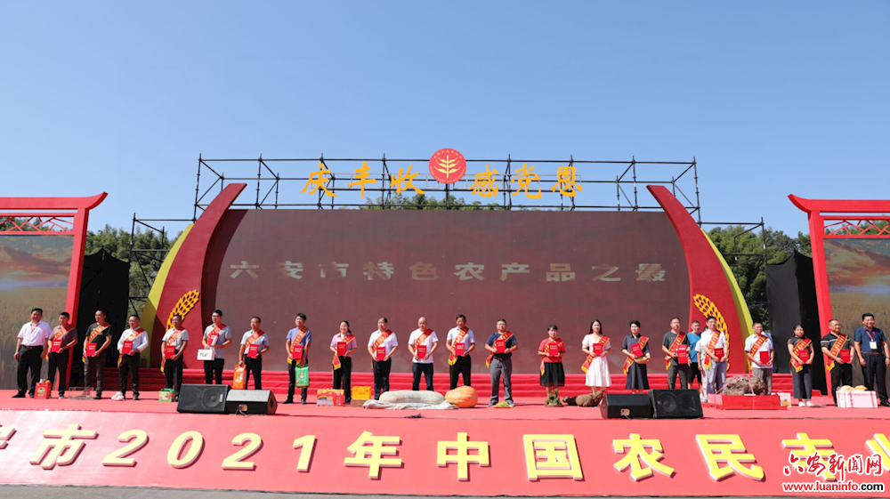 绿意葱葱的竹海是文艺演出绝佳的舞台背景,两厢搭起的长排红帐篷成了当下农民晒丰收的最好擂台。舞台上,20名新当选的2021年全市优秀农村产业发展带头人暨优秀新型职业农民的获奖者迈着自豪的步伐上台领奖。擂台上,来自各县区的家庭农场等新型农业主体带来了各自的优质特色农产品,进行“皖西农产品之最”的火爆评选。