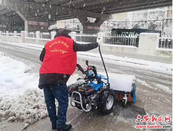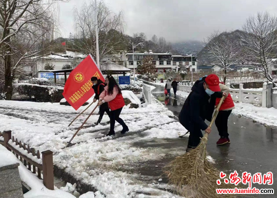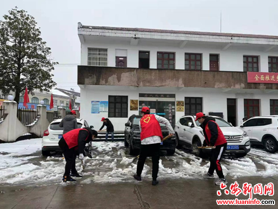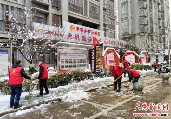 裕安区退役军人“红耀江淮”志愿服务队组织人员深入居民小区、背街小巷开展铲雪除冰、排查隐患志愿服务
