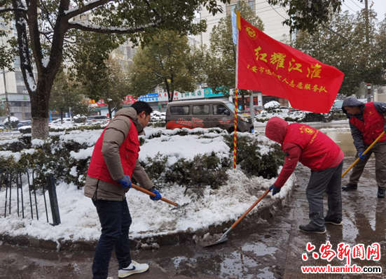 金安区退役军人“红耀江淮”志愿服务队开展清积雪、保畅通工作