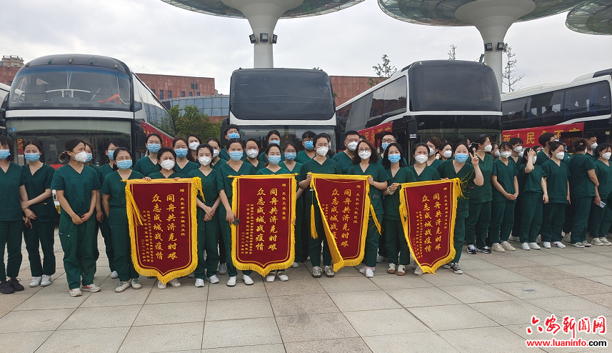 “即将回到家乡,愿六地平安,希望六安人民早日恢复正常的生产生活秩序。”“我们风雨同舟共同抗疫,胜利的取得属于每一个一线抗疫人员的共同努力,希望六安这个美丽的城市越来越好。”4月27日下午,滁州市和铜陵市支援六安医疗服务队近500人,留下了对皖西人民的美好祝福踏上了归程。