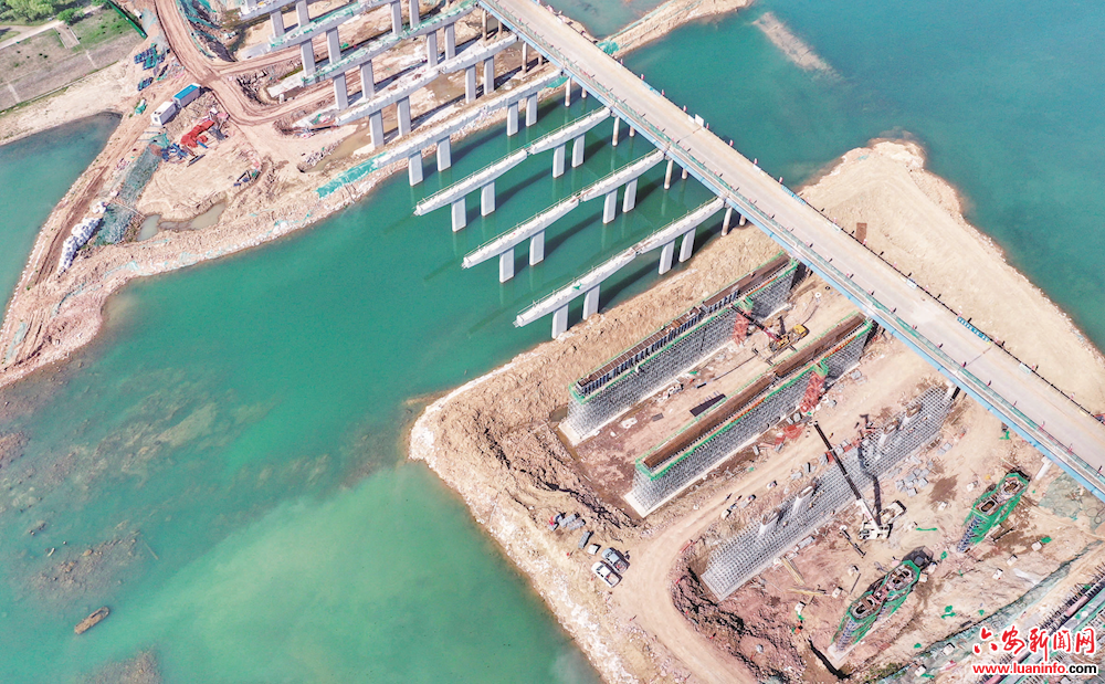 5月3日,城区窑岗嘴大桥拓宽改造及两侧桥头立体化改造工程现场,工人正进行桥梁基础、墩柱等浇筑作业,工程车来回穿梭,各项建设有序稳步推进;空中俯瞰,已完成浇筑的墩柱和盖梁犹如钢琴键盘横跨在老淠河上。该项目作为畅通城市环线的重要节点,建成后将有效加强城市环线与外部交通、主要通道的衔接,形成内连外通的环线交通体系,更好地服务于群众出行和促进经济社会发展。
