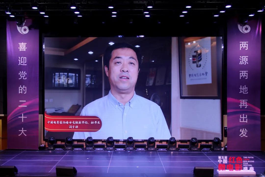 中国电影家协会党组副书记、秘书长闫少非通过视频发表致辞,并寄语广大文艺工作者聚焦红色文化,锤炼文艺创作,讲好红色故事,传承红色基因。