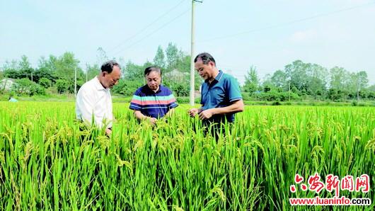 市人大代表朱列华(右一)查看村级集体经济特色优质软香稻场景。
