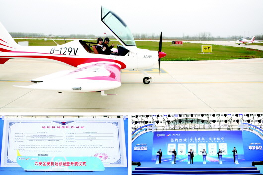 3000多平方米的航站楼和塔台,800×23米的跑道和大型的停机坪,不同型号、品牌的小型飞机依次就位……3月28日,六安金安机场正式投入运营,它是全省第三个获得正式运营许可的A1类通用机场,填补了皖西地区通航基础设施的空白,翻开了我市通用航空产业发展新篇章。