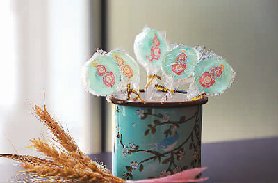 中国国家博物馆推出的带有语音导览功能的高科技棒棒糖,参观者可以边吃糖边收听文物解说,享受趣味与新奇体验。(图片来源:国博美馔微博)
