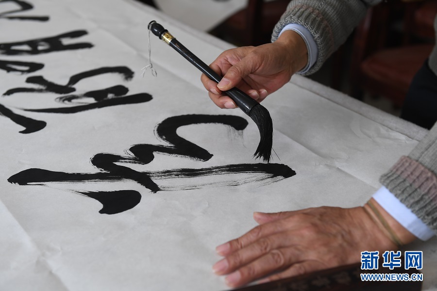 10月22日,在重庆市九龙坡区老年人活动中心,一位老人正在进行书法创作。新华网 彭博 摄
