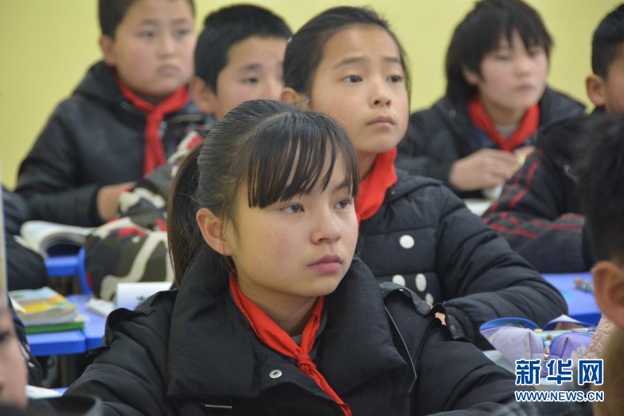 12月1日,在广河县三甲集镇火炬小学,东乡族女孩马梅(前排)正在教室内听讲。新华社记者颜之宏摄