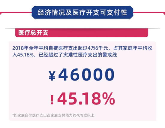 “2018年全年,受访的656位多发性硬化患者的平均自费医疗支出超过了4.6万元,占其家庭年平均收入45.18%,已经超过了灾难性医疗支出的警戒线(即家庭自付医疗支出占家庭支付能力的40%或以上),显然在经济承受能力和家庭内部关系上造成了巨大的压力。”香港中文大学董咚教授说。