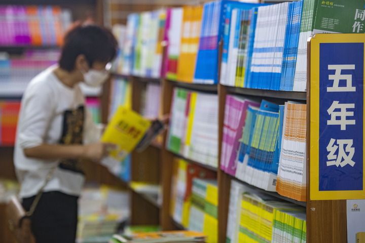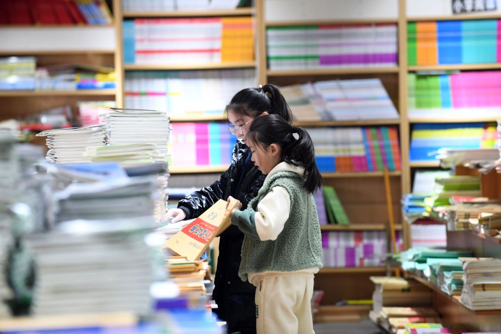 2月1日,家长在海南省琼海市的一家文化用品店选购教辅图书。新华社发(蒙钟德摄)
