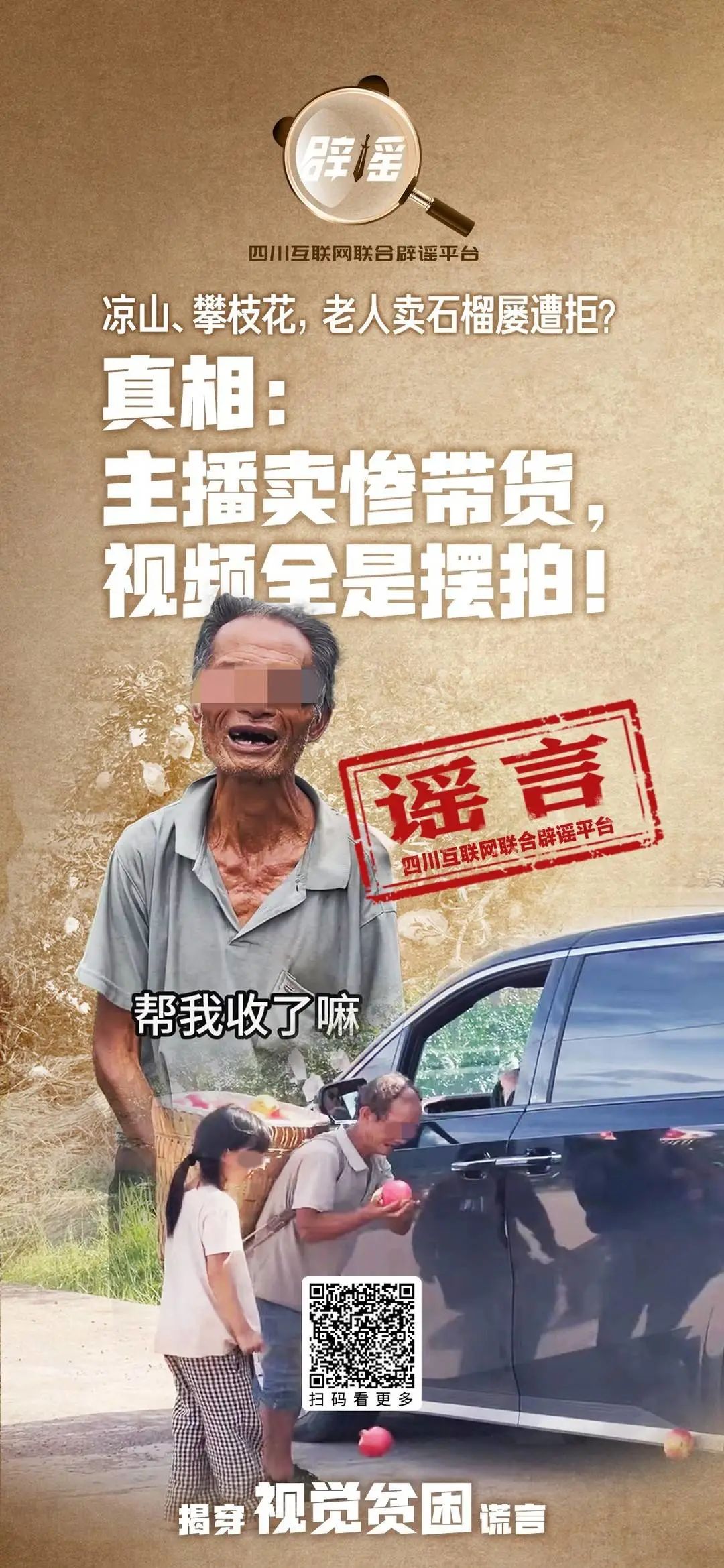 连日来,四川互联网联合辟谣平台、封面新闻记者走访了凉山州会理市、攀枝花市仁和区的石榴产区,辗转寻找到了上述视频中的多名老人后发现,这些热门视频的背后,实则为“卖惨带货”的营销套路。