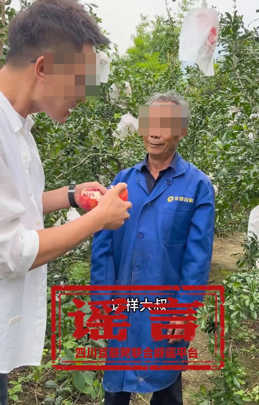 “都是他们教我说的,我家根本没有种石榴。”李金邦表示,前段时间,几名自称收石榴的人找到他,说拍个宣传视频。随后,他和两个女儿被带到新发镇乐寨村,拍摄者让他根据设计好的情节,进行了一段表演。
