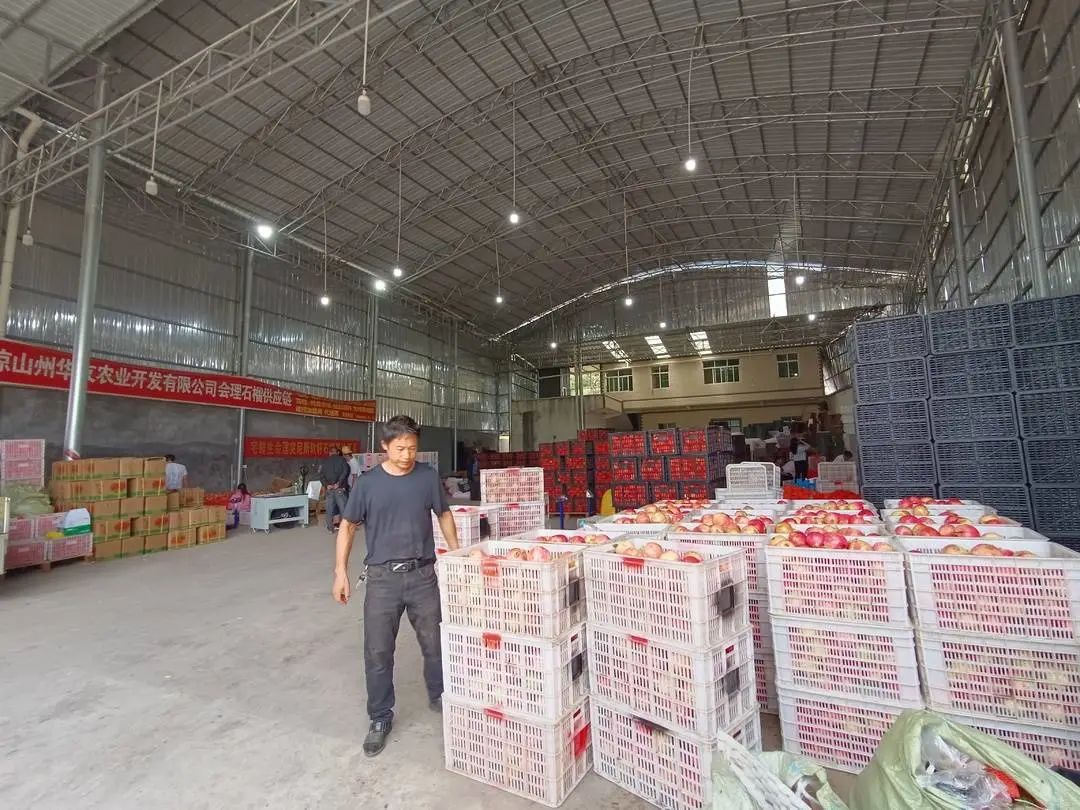 △仓库中等待装箱发货的石榴