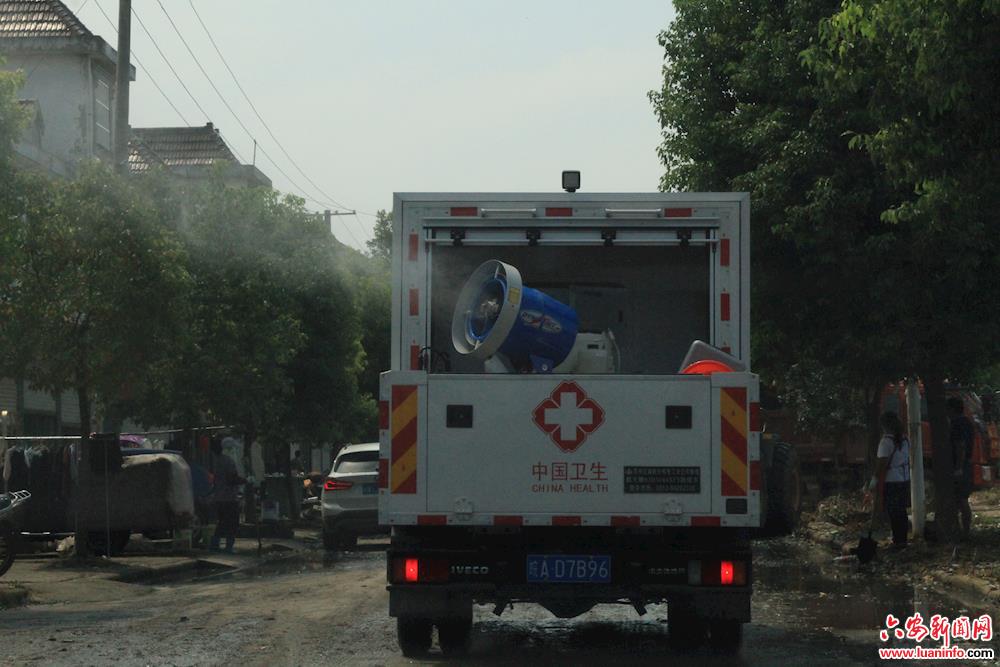 由于洪涝灾害发生在人口密度较大的镇中区域,加之固镇镇为禽类养殖大镇,洪涝灾害后产生大量死亡禽类和其他垃圾,生活环境恶劣,鼠类、蚊蝇等病媒生物极易滋生,灾后常见病发生风险较大。7月22日开始,裕安区抽调专业工作人员50余人,各类消毒器械60余台套,对逐步退水的区域全面消杀,确保大灾之后无大疫。截至目前,累计消耗84消毒液12000余瓶,漂白精片(粉)1000余公斤,各类杀虫剂100余公斤。