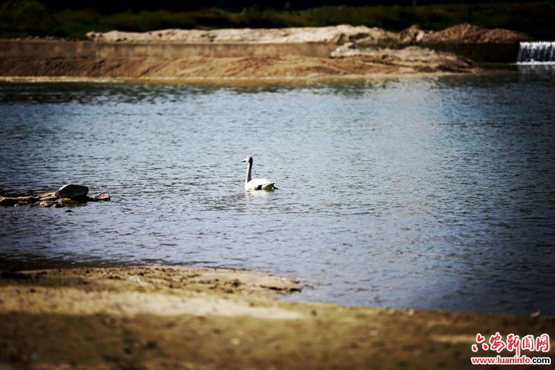 10月30日上午,一只小天鹅幼鸟在位于霍山县漫水河镇漫、清两河交汇处的戏子潭水面上自由游弋。