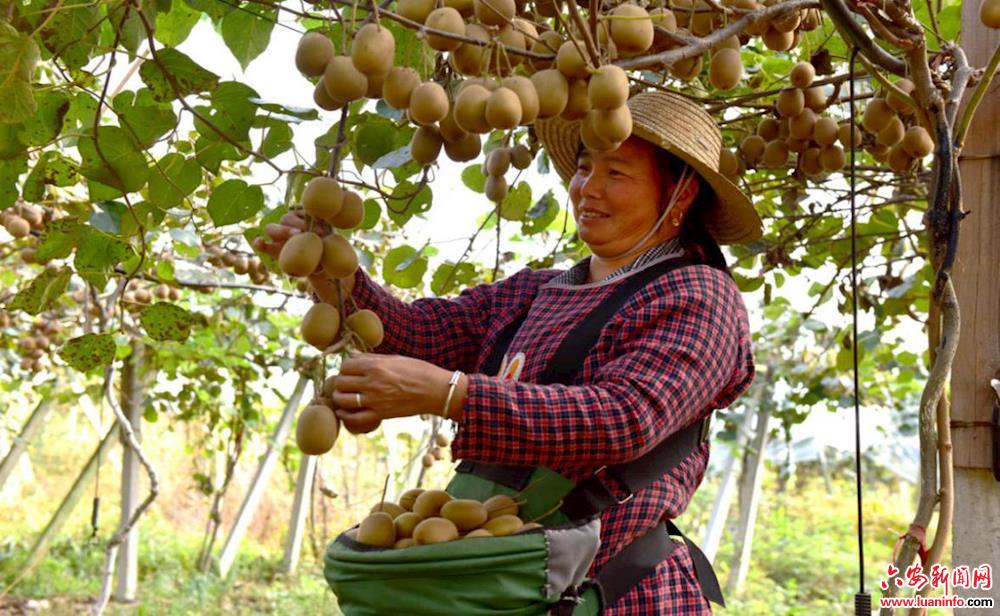 金秋十月,天气渐凉。位于大别山腹地的金寨县斑竹园镇金山村内一片繁忙的景象引人注目,只见数十个村民正在猕猴桃园采摘果实,丰收的喜悦似乎让他们全然忘记了深秋的寒冷。