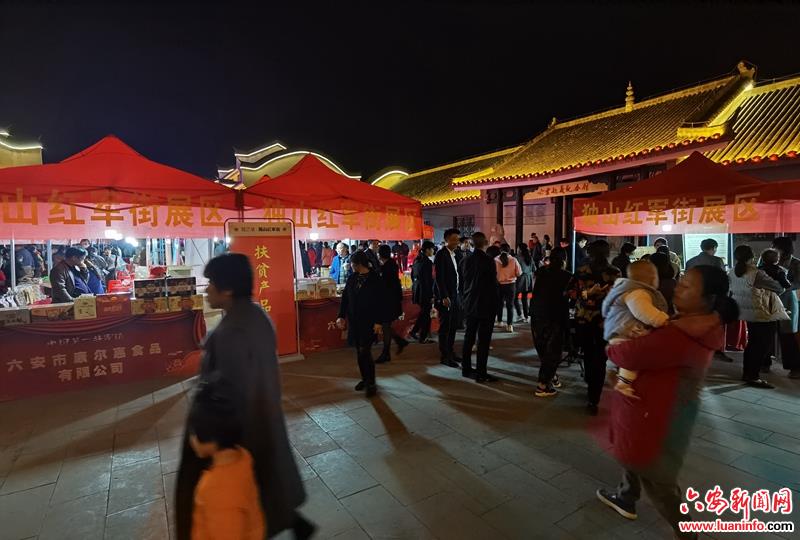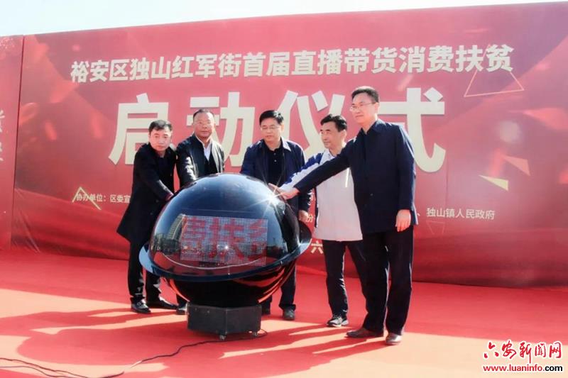 11月11日上午,独山红军街首届直播带货消费扶贫启动仪式举行,裕安区共组织了29家扶贫企业进行扶贫产品销售,同时网红进行现场直播带货。当天裕安区独山镇红军街内热闹非凡,人头攒动,销售活动一直持续到大半夜。现场有太安村的稻鳖米、固腊香家庭农场的皖西大白鹅、六安的篮茶、匡家食品的炒货、伊甸园油茶合作社的山茶系列产品、非物质文化遗产的徐集花生糖、花无缺合作社的无花果、立果合作社的灵芝和咏徽茶叶的六安瓜片等。本场活动得到了省内各媒体大力支持。扶贫企业线上线下销售额达56.5万元,其中展区扶贫企业夜间销售额近3万元。通过打造夜经济,仅当天独山红军街周边商户营业额预估有100多万。